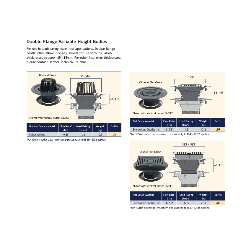 Harmer Roof Cast Iron Medi Sump Vertical Spigot Outlet Square Ductile Iron Adj