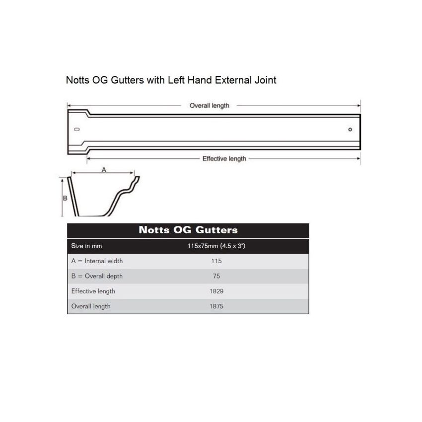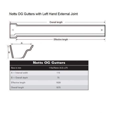 115mm Premier Notts Ogee Cast Iron Gutter x 1.83m (6') available in Standard Grey Metal Primer or finished in Black Semi Gloss - Other Colours available upon request.