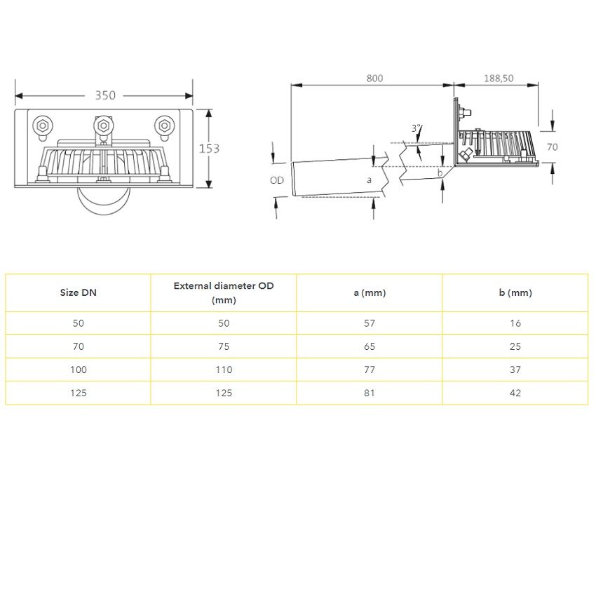 Sita Rondo Parapet Outlet, complete with Dome gate, pipe length 800mm in 50, 75, 110 & 125mm OD pipe options