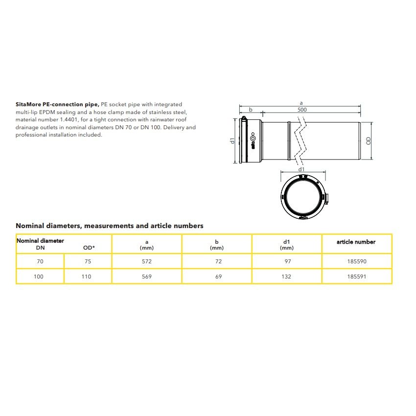 Sita More Parapet Roof Outlet Connection Pipe, available in 75mm & 110mm OD pipe options, length 500mm, 1000mm, 2000mm, 3000mm & 5000mm.