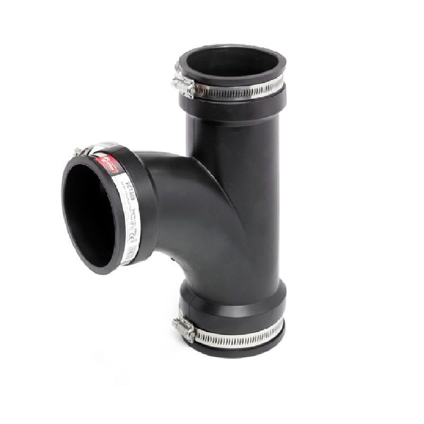 VIPSeal Plumbing 90 Degree Tee coupling, made from high quality thermoplastic flexible PVC, available in four sizes, O/D size range from 41mm up to 116mm.
