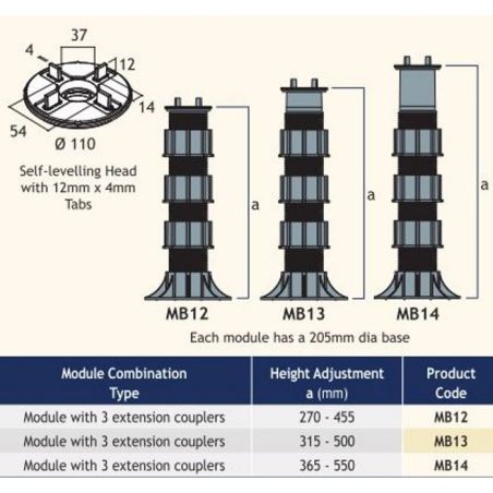 Harmer Modulock Pedestal Raised Deck Support Self Levelling Head 12mm