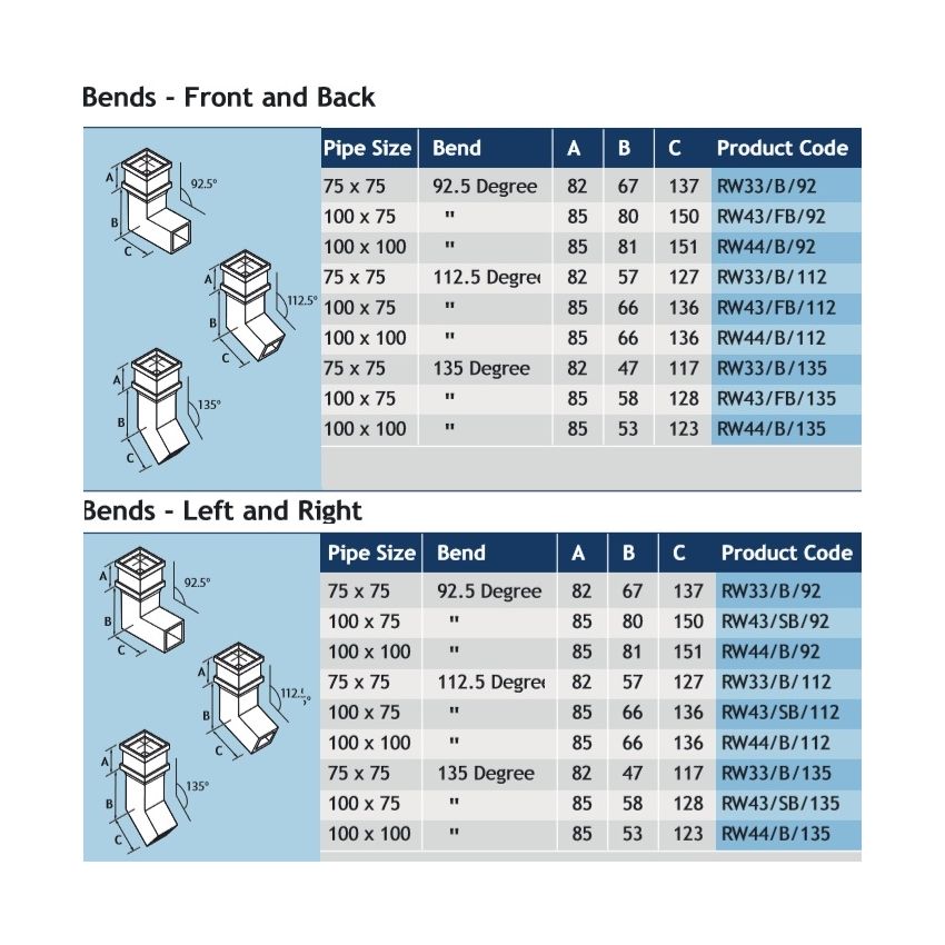 Alumasc Rectangular Cast Aluminium Socketed Bend 112.5 degree F&B Without Ears