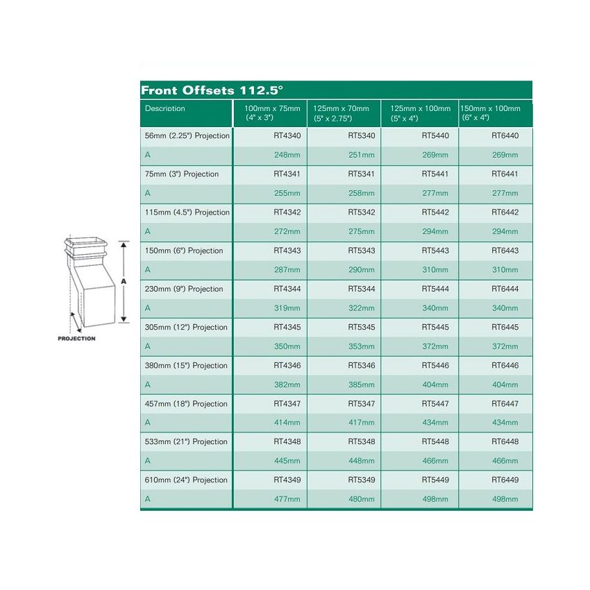 Hargreaves Premier Rectangular cast Iron Downpipe Side Offset 75mm Projection