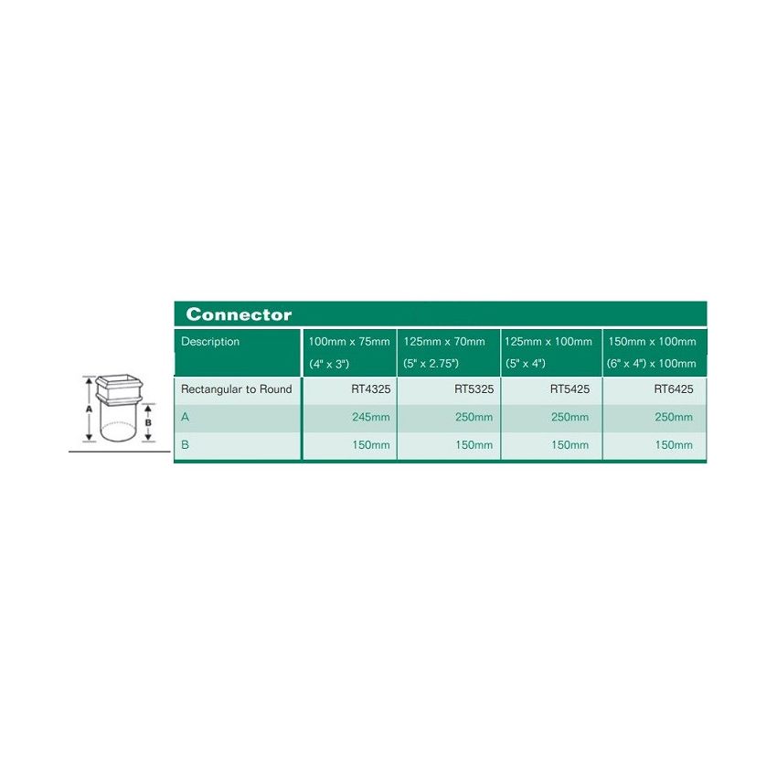 Premier Rectangular to Round Cast Iron Downpipe Connector available in Standard Grey Metal Primer or finished in Black Semi Gloss - Other Colours available upon request.