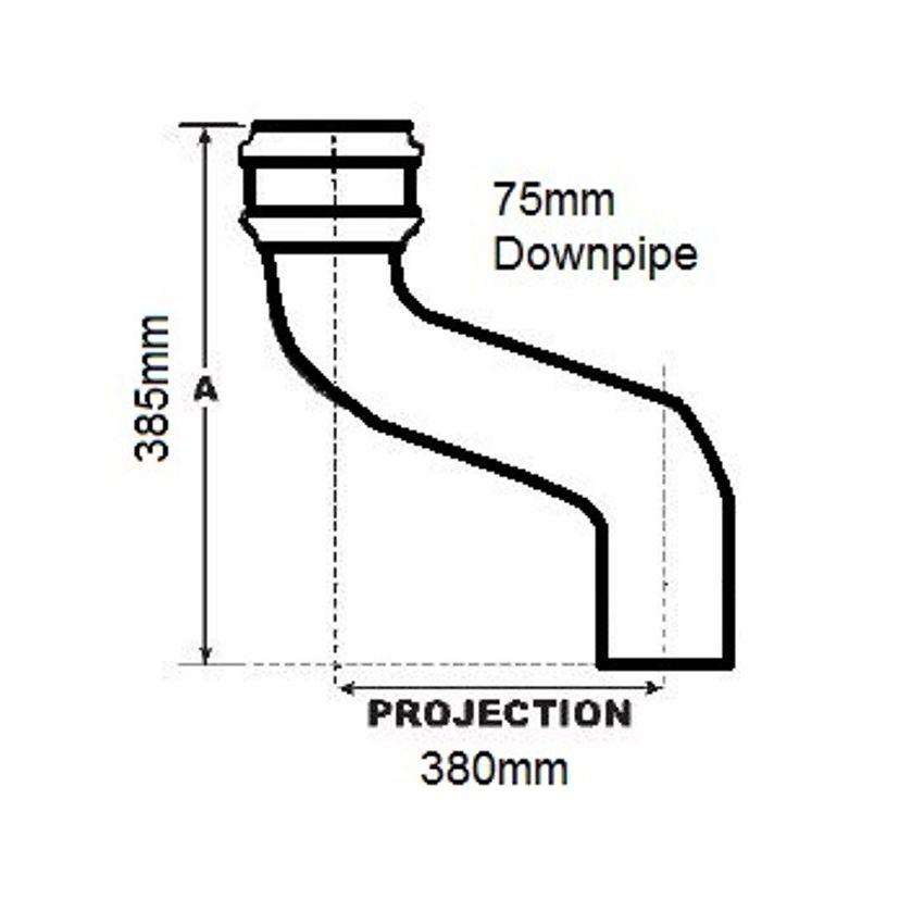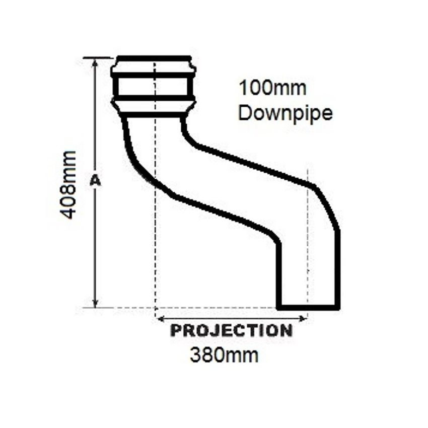 Premier Round Cast Iron Downpipe Offset 380mm (15") Projection available in Standard Grey Metal Primer or finished in Black Semi Gloss - Other Colours available upon request.