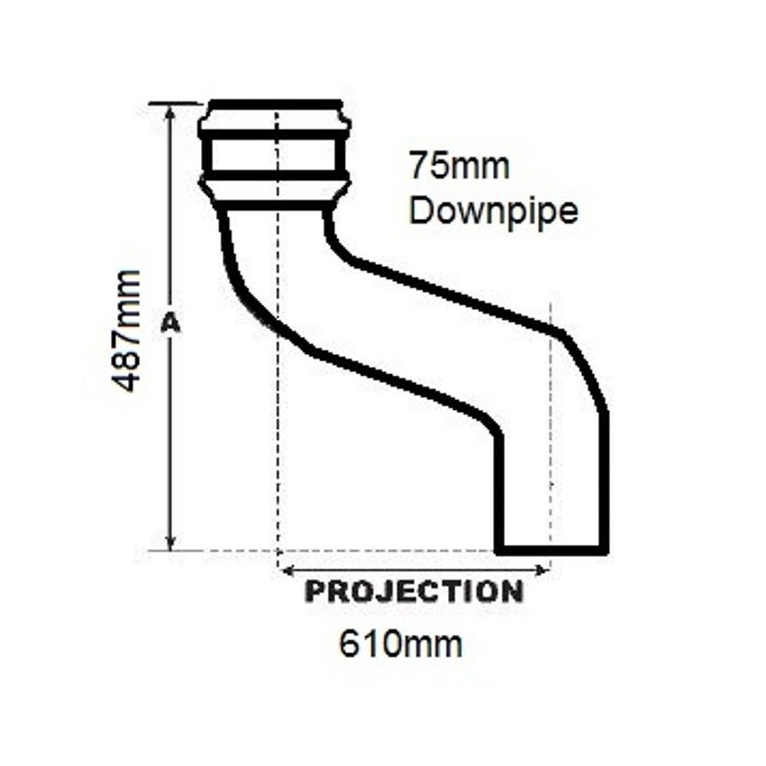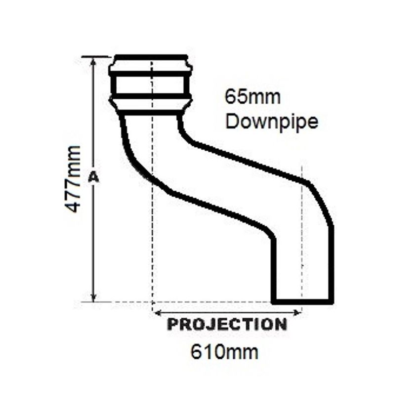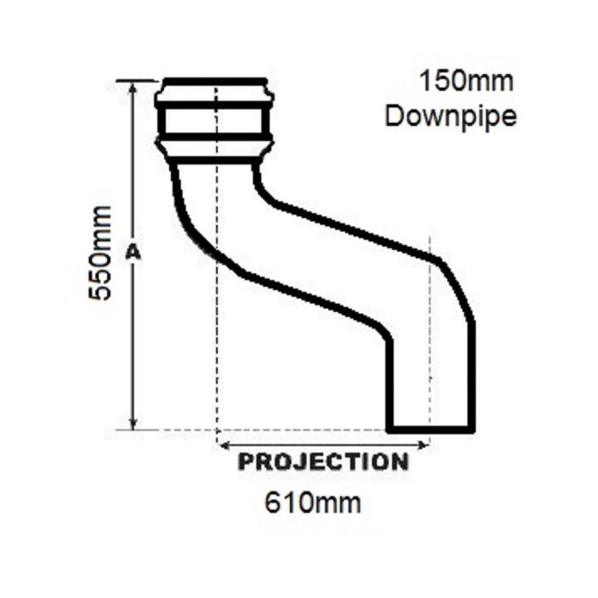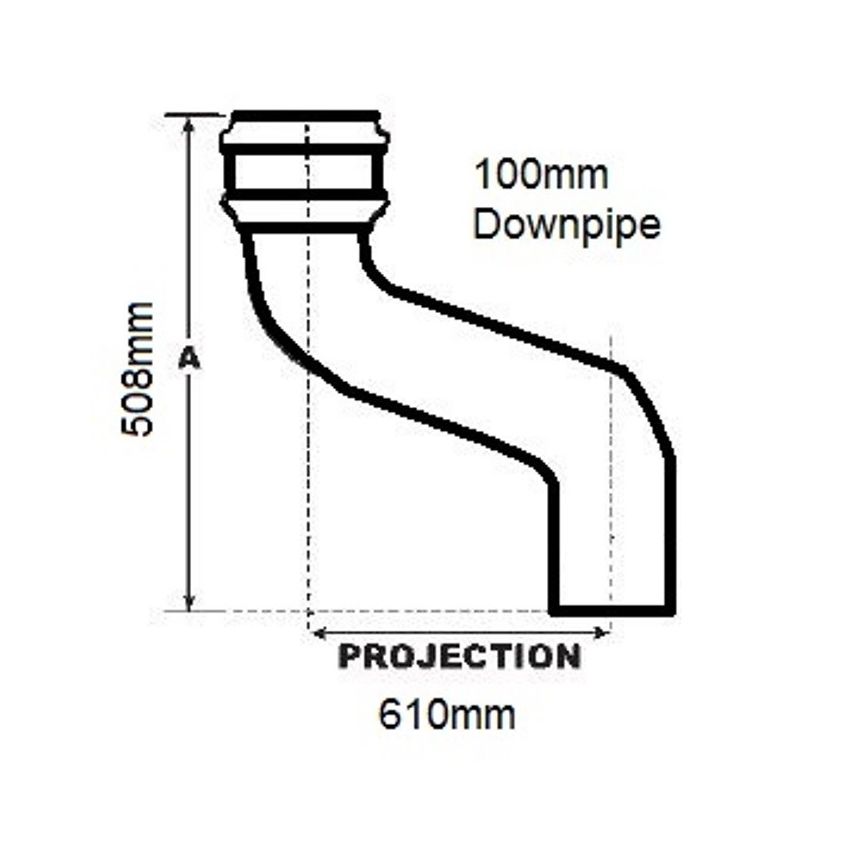 Premier Round Cast Iron Downpipe Offset 610mm (24") Projection available in Standard Grey Metal Primer or finished in Black Semi Gloss - Other Colours available upon request.