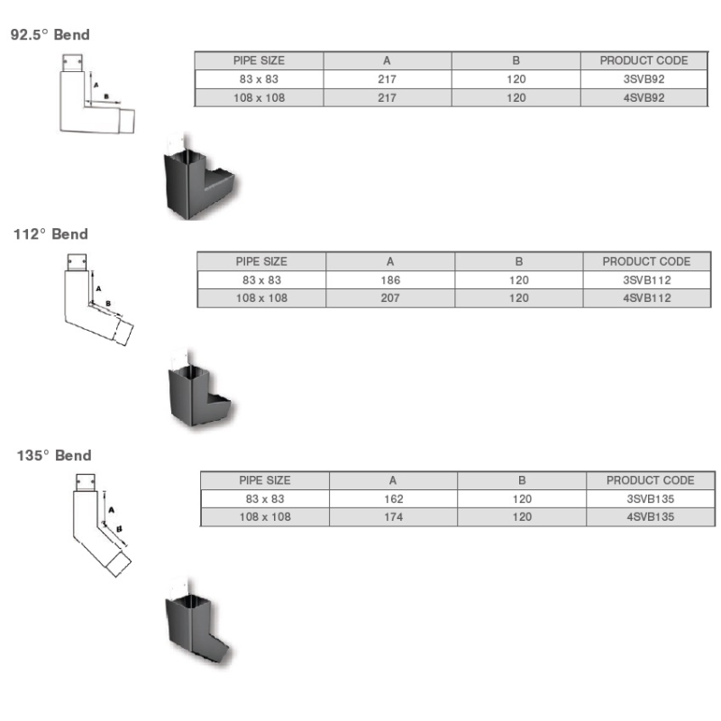 Aluminium Security Square 135 Degree Bend, available in 2 sizes, 83mm x 83mm & 108mm x 108mm.