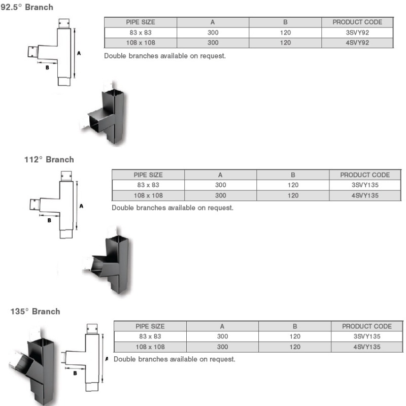 Aluminium Security Square 112 Degree Branch, available in 2 sizes, 83mm x 83mm & 108mm x 108mm.