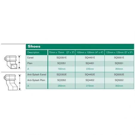 Premier Square Cast Iron Downpipe Shoe Eared available in Standard Metal Grey Primer or finished in Black Semi Gloss - other colours available on request.