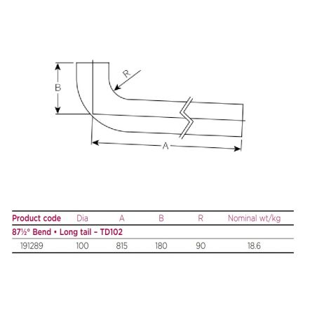 Pam Building Cast Iron 87.5 Degree Long Tail Bend (815mm), available in 100mm diameter, for Below Ground.