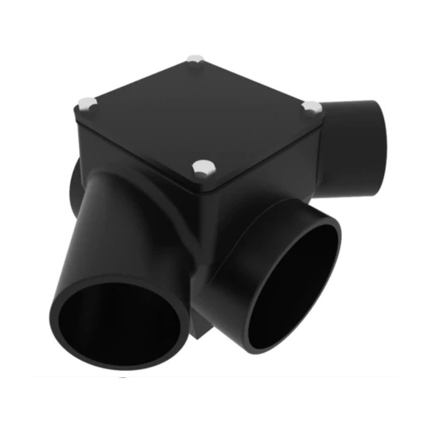Pam Building Cast Iron Inspection Chamber with One Branch Each Side, available in 100mm x100mm, 150mm x 100mm, 150mm x 150mm, 225mm x 100mm, 225mm x 150mm & 225mm x 225mm diameter, for Below Ground.