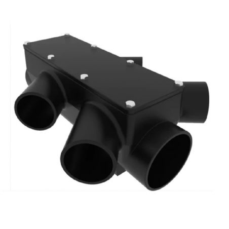 Pam Building Cast Iron Inspection Chambers with Two Branches Each Side, available in 100mm x100mm, 150mm x 100mm, 150mm x 150mm, 225mm x 100mm, 225mm x 150mm & 225mm x 225mm diameter, for Below Ground.