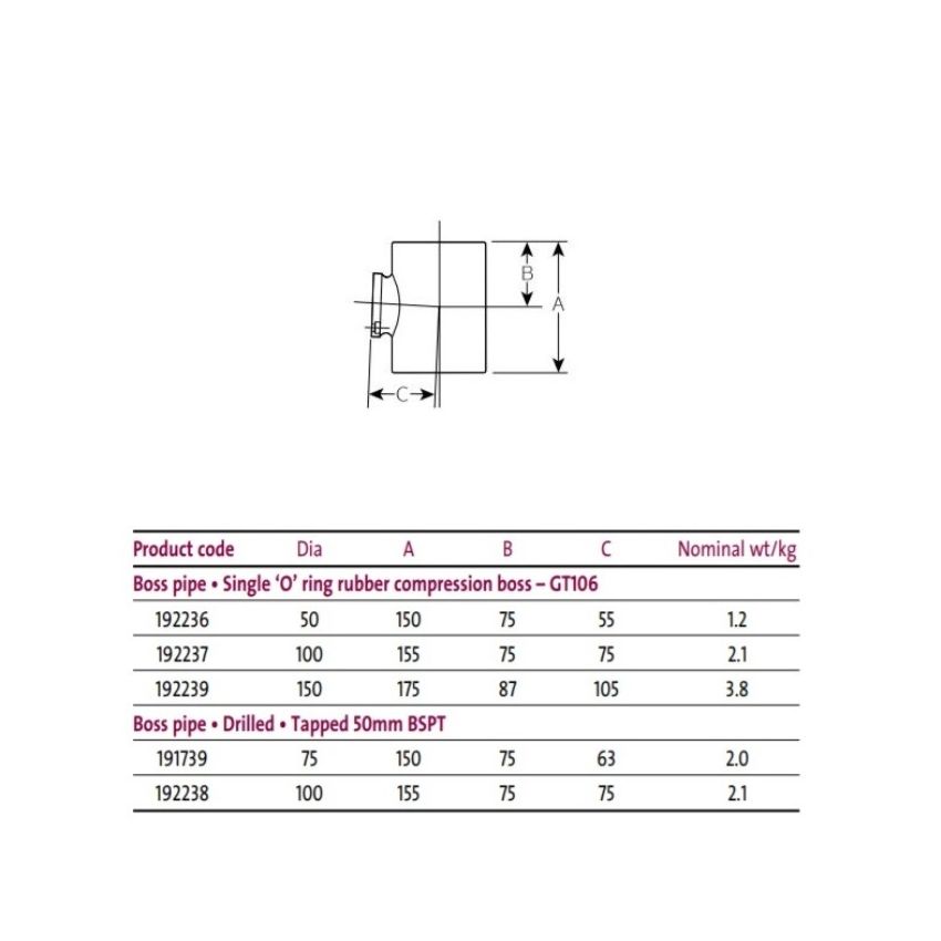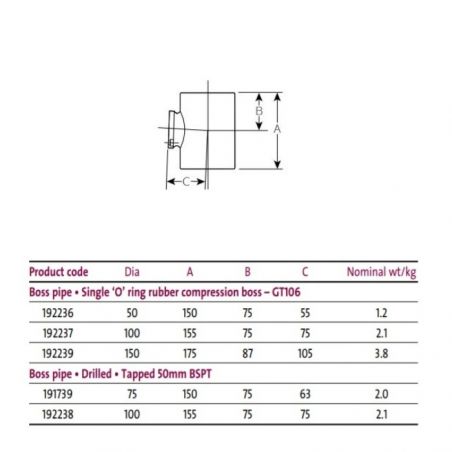Pam Building Timesaver Cast Iron Soil Single 50mm Boss Pipe GT106