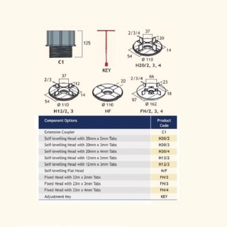 Harmer Modulock Raised Deck Support Self Levelling Head with 20mm x 2mm, 3mm, 4mm Tabs.
