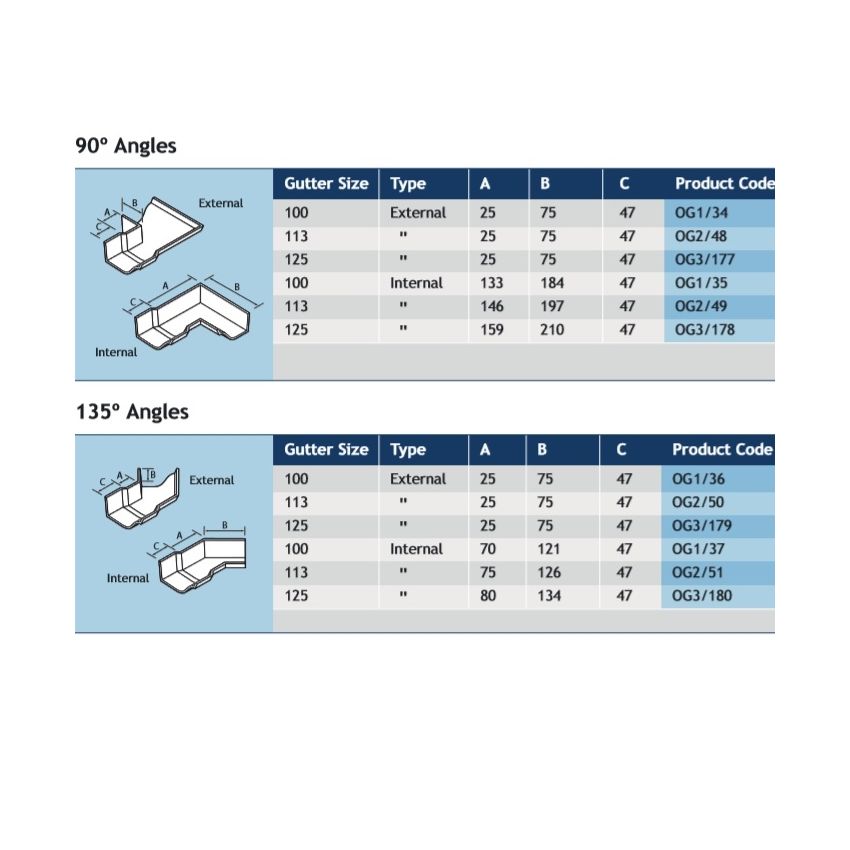 Heritage Victorian Ogee cast aluminium Gutter Internal Angle 90 Degrees available in 3 gutter sizes. More information available at www.aluminiumgutteringcentre.co.uk
