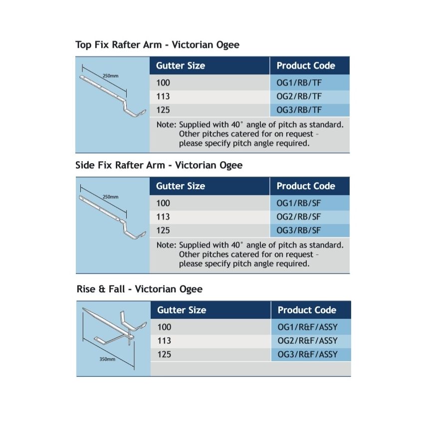 Heritage Victorian Ogee cast aluminium Old Style Top Fix Rafter Bracket with 40 degree angle, available in 3 gutter sizes. More information available at www.aluminiumgutteringcentre.co.uk