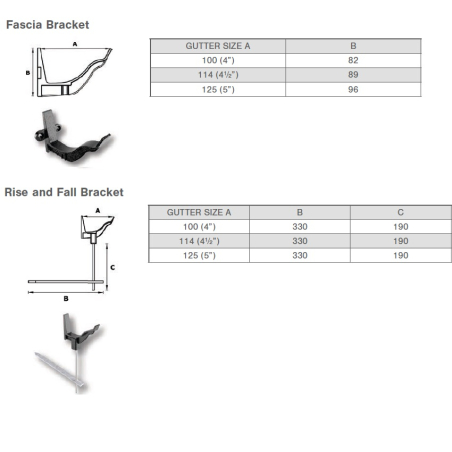 Cast Aluminium Victorian Ogee Rise and Fall Bracket, 3 profile widths, 100mm (4"), 115mm (4.5") & 130mm (5"), available with a complete range of gutter fittings, which include Stop Ends, Running Outlets, Gutter Angles, Non Standard, Irregular Angles, Raked Angles, Apex Angles.