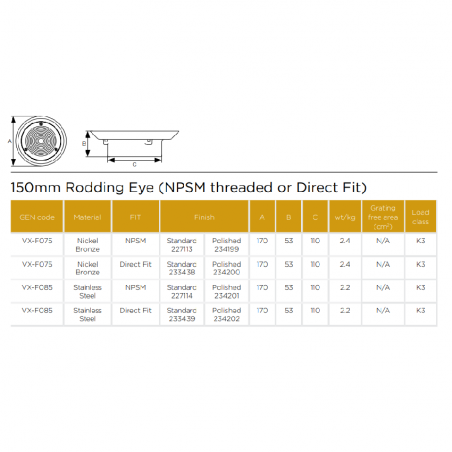• Gratings Load class options as depicted in BS EN 1253: > K3—Pedestrian areas and wet room applications such as shower areas, bathrooms, swimming baths, leisure centres, balconies, retail areas, hotels, offices, schools, public buildings, hospitals, prisons, terraces and roof gardens > L15—Areas of light vehicular traffic such as cycle ways and domestic drives > M125—Car parks