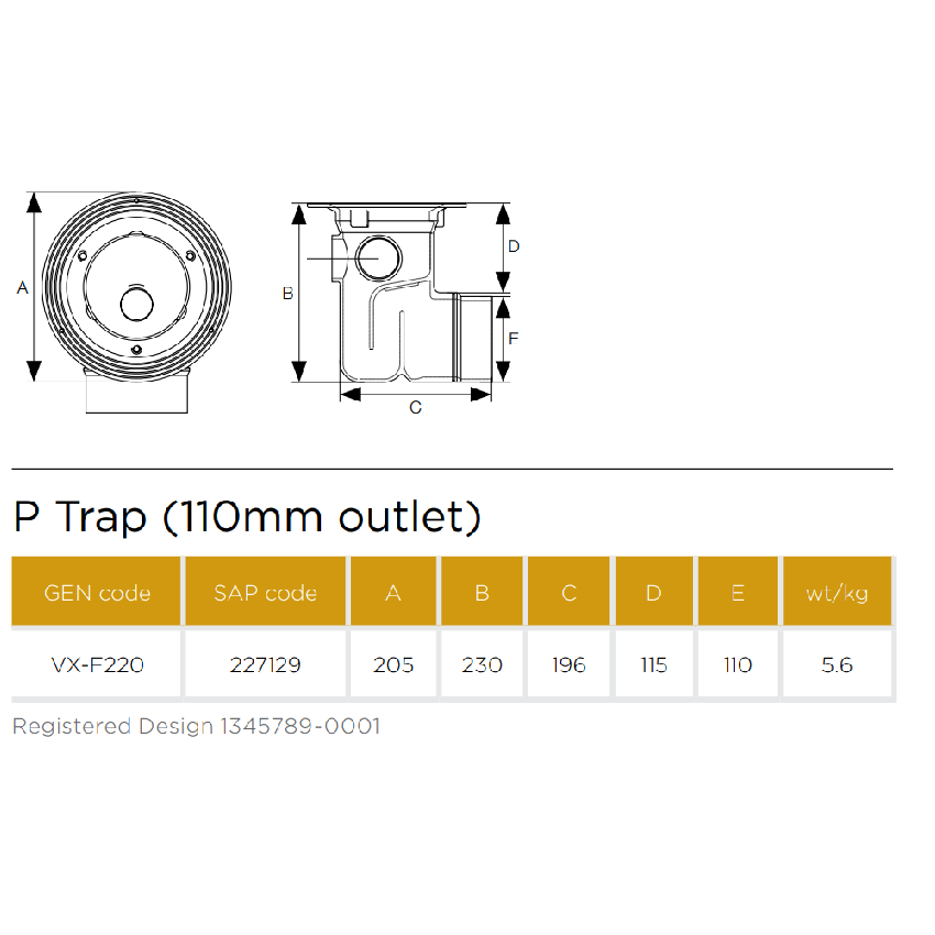 Pam Building VortX P Trap Floor Gully. 110mm.