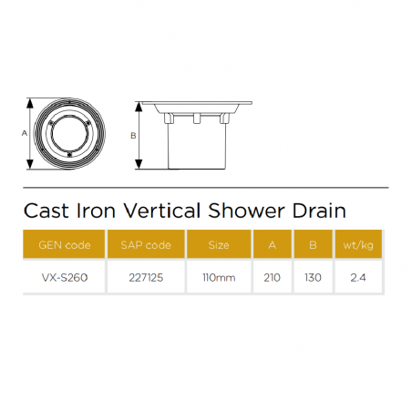 Pam Building VortX Shower Drain Kit With 110mm Cast Iron Vertical